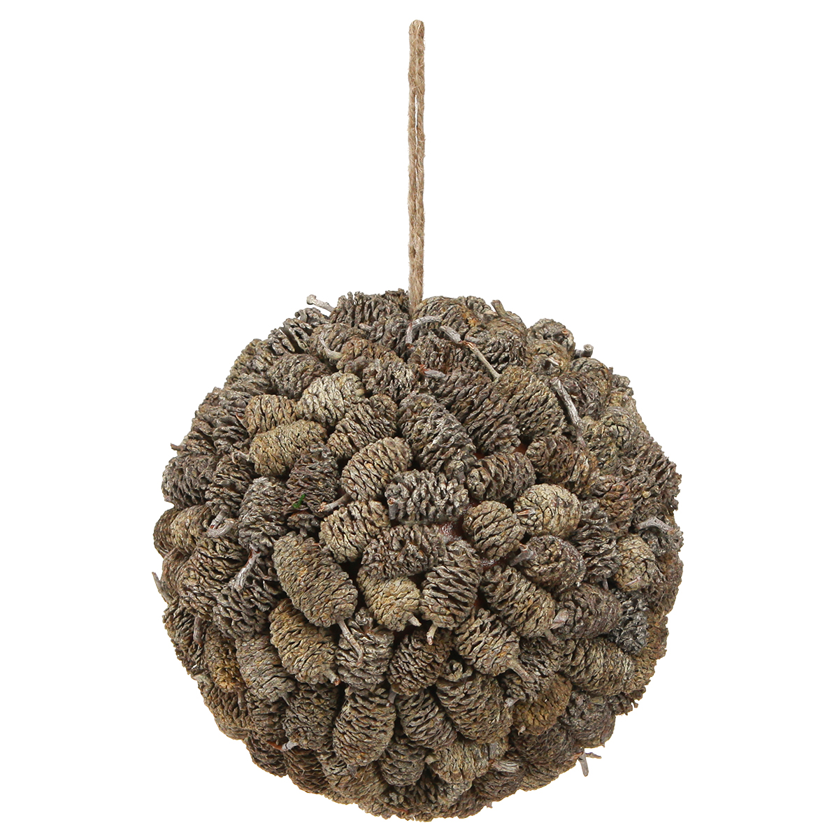 Alder cone decorative ball for hanging, white washed, 20 cm