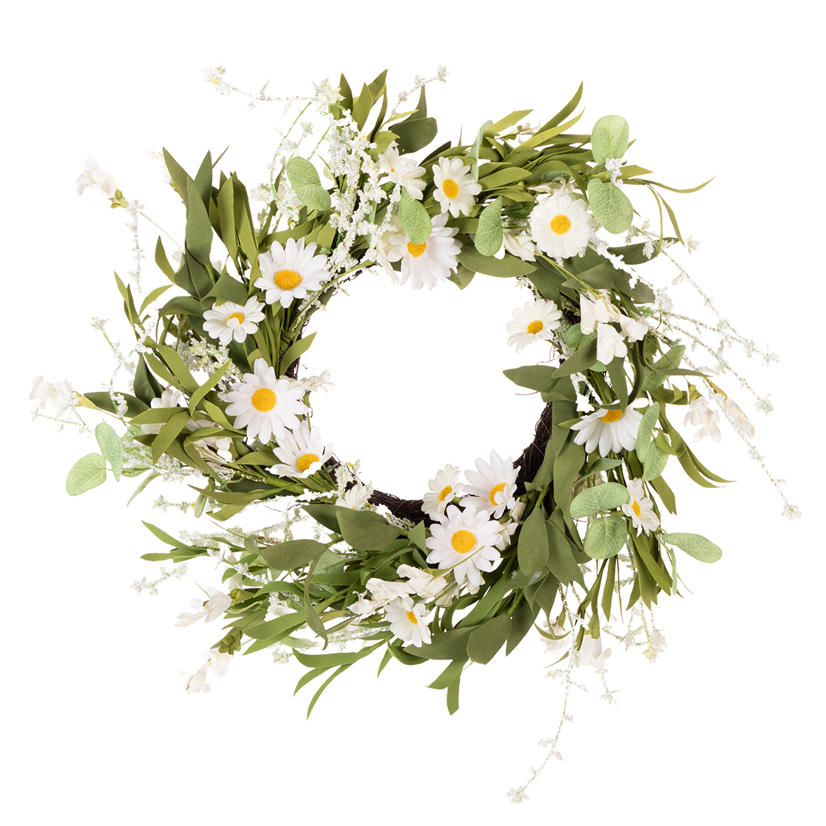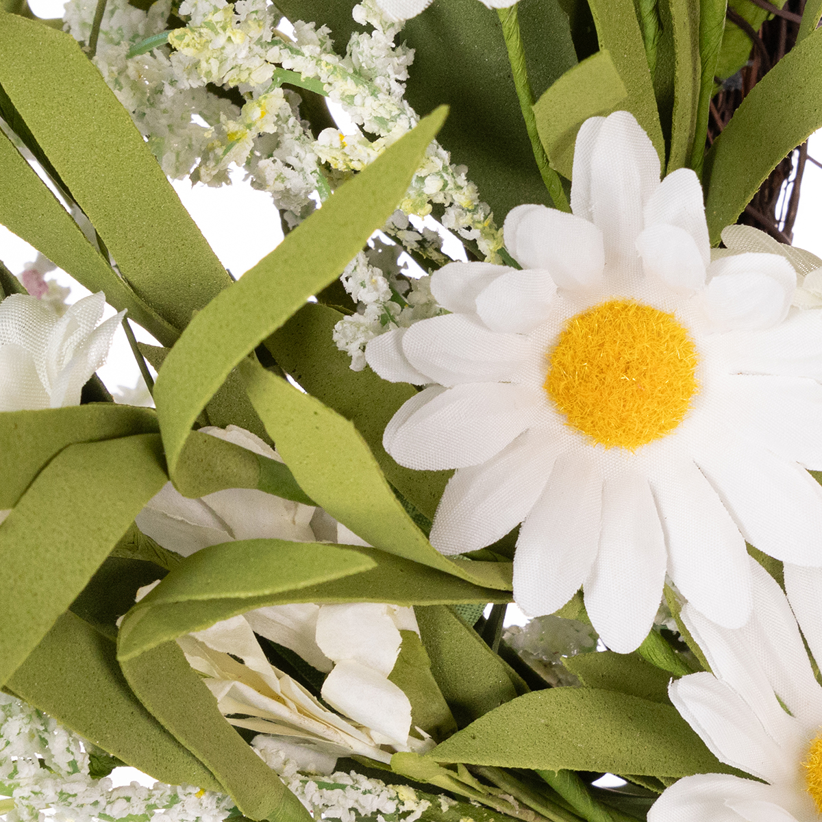 This lovingly crafted daisy wreath is the perfect choice to decorate your entryway, hallway, or any bare wall. The lifelike blossoms and vibrant greenery look freshly picked and lend a welcoming feel to any room. Whether your style is country, Scandinavian, or modern, this artificial flower wreath blends harmoniously into a variety of interior design styles. Thanks to the durable materials, the vibrant colors will last for years without the hassle of watering or wilting. It's perfect for anyone who appreciates timeless decorations.