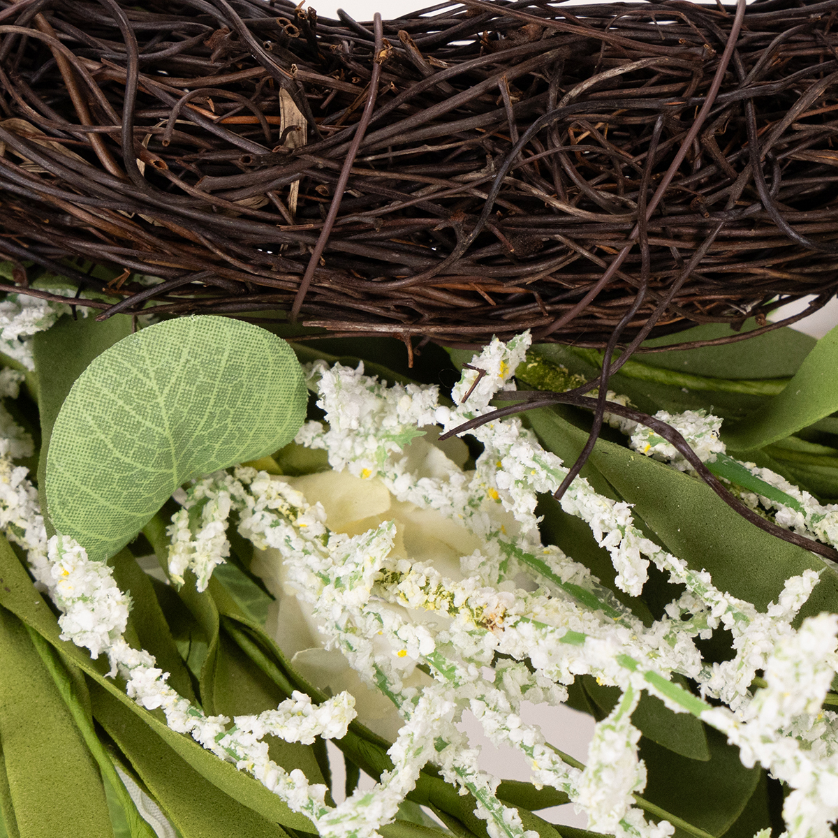 Combine the artificial flower wreath with a pretty vase, other flower arrangements, or candles to create a stunning decorative ensemble. The wreath also creates a particularly inviting atmosphere for festive occasions such as Easter or spring celebrations.
