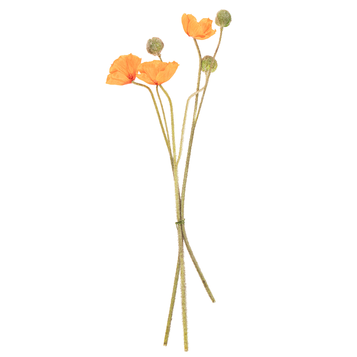 - Three realistic poppy branches, each with one flower and one bud