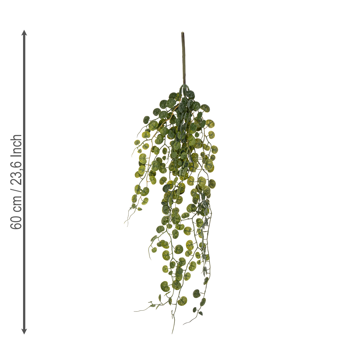 This meticulously detailed artificial hanging plant impresses with a length of 60 cm and a diameter of 20 cm. The leaves are made of high-quality plastic, whose texture and color remarkably mimic real plants. A practical feature: thanks to the flexible stem, the plant can be shaped and arranged as desired. Want even more flexibility? The set of two allows you to bring even more creative ideas to life, whether as a combined table decoration or as an eye-catching wall display.