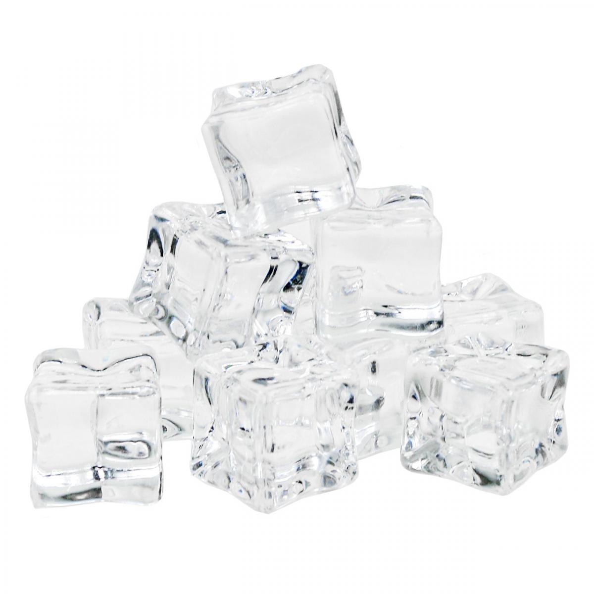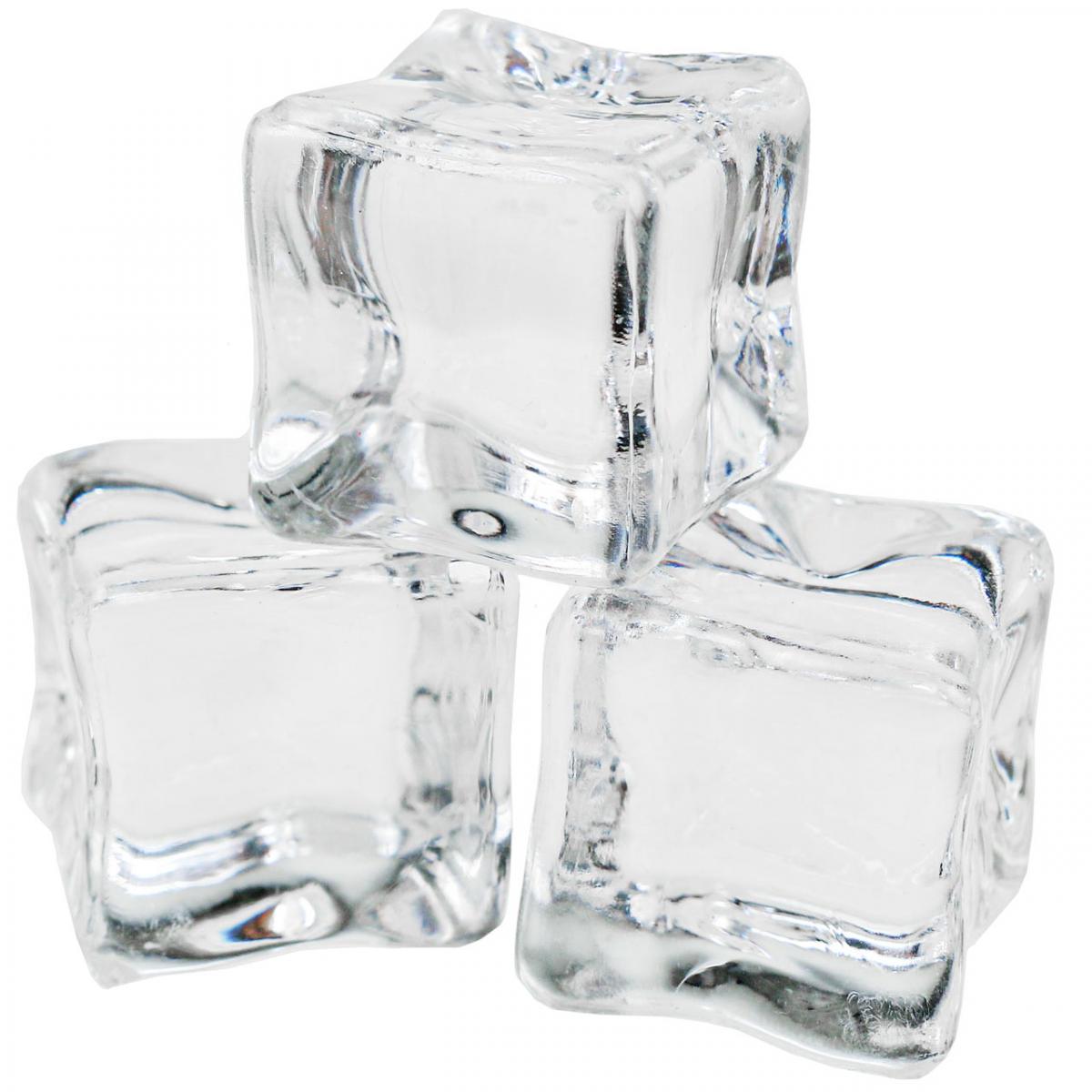 The acrylic cubes have natural-looking shapes, like ice that has already melted a little. The transparency and clarity of the plastic make the decorative ice cubes look real.