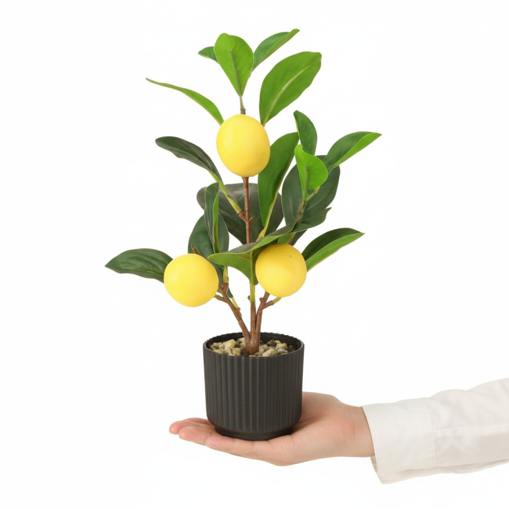 - Artificial lemon tree in a pot with real-looking lemons