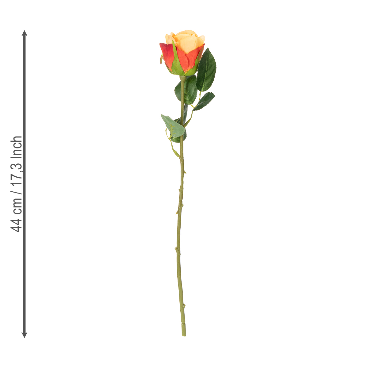 This artificial rose arrangement with its six orange blossoms is a true all-rounder in the world of home decor. At 44 cm tall, it looks particularly elegant in tall vases. The meticulous craftsmanship using high-quality polyester and plastic gives the roses a natural appearance that is convincing even up close. The warm orange tones of the blossoms bring lightness and brightness to your rooms, while the green leaves add a touch of nature. Whether you want to freshen up your living room decor or are looking for a stylish addition to your dining table – this bouquet is a perfect fit.