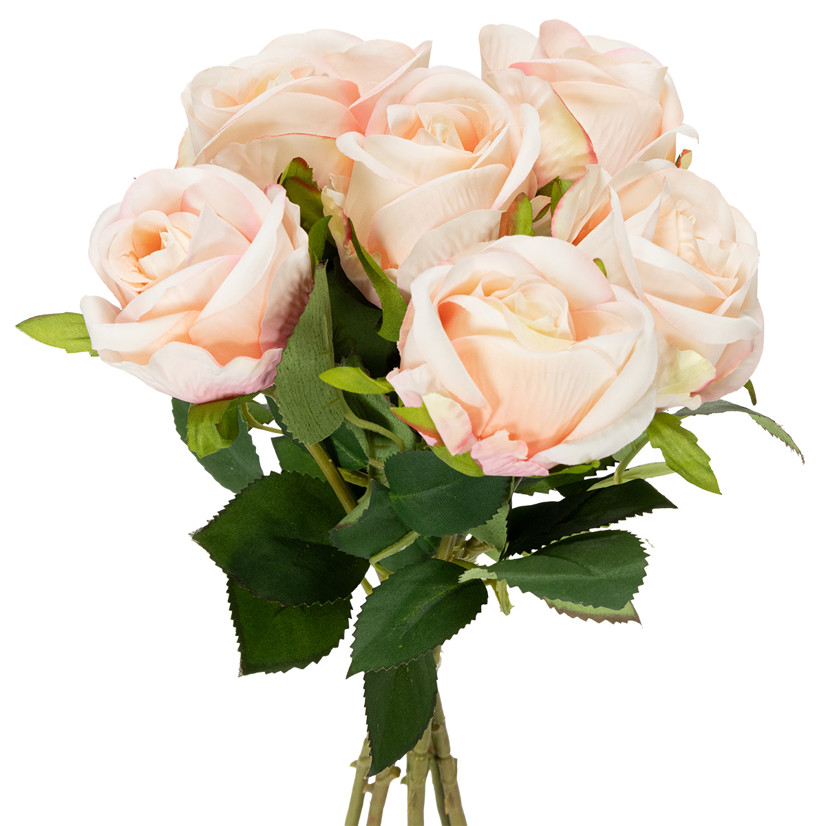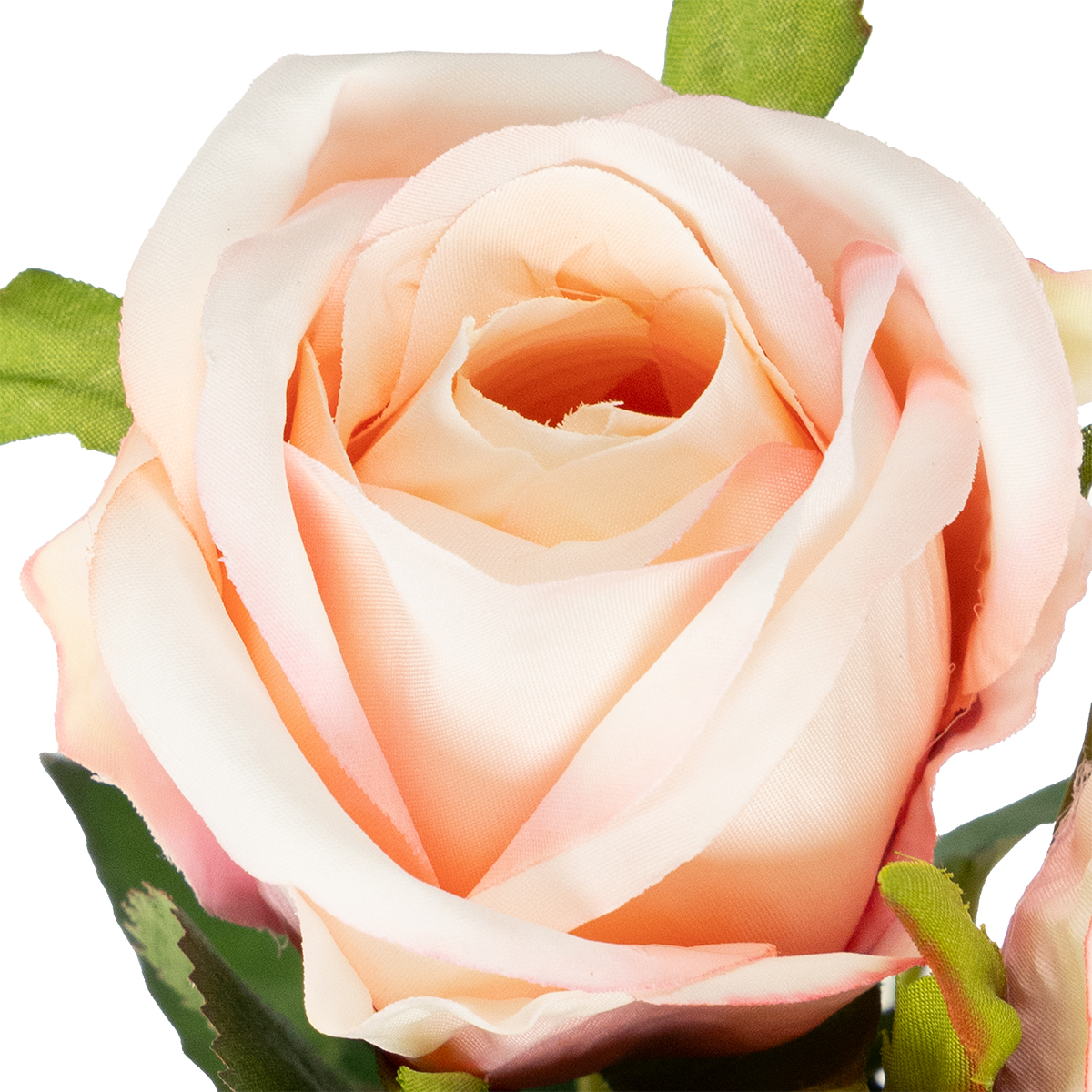 Do you love the charm of roses but want to avoid the hassle of caring for them? No problem! With our artificial rose bouquet, you can bring the timeless beauty of the queen of flowers directly into your home. Perfect for anyone who appreciates elegant decoration without the need for fresh flowers. Whether as a focal point in the living room, a charming table decoration for special occasions, or a stylish gift – this rose bouquet lends a special atmosphere to any room. The delicate pink silk blossoms combined with green leaves look so incredibly realistic that you might almost forget they're artificial. Your guests will be amazed!