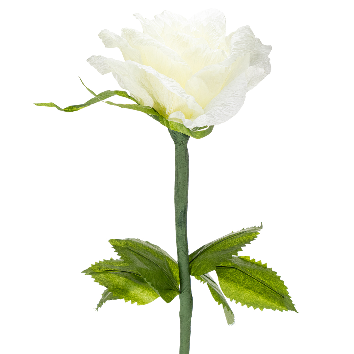 Our artificial white rose impresses with its striking size, meticulous craftsmanship, and versatile applications. Its understated elegance makes it a perfect fit for various interior design styles, from classic and modern minimalism to boho chic. The natural look of the paper blossoms, combined with the green stem and leaves, creates a remarkably realistic appearance. Anyone wanting to avoid the hassle of caring for real flowers will love this easy-to-use alternative.