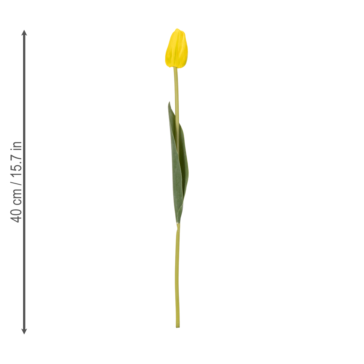 These seven vibrant yellow tulips look almost deceptively real thanks to their realistic appearance. Made of high-quality polyester, which beautifully highlights the subtle color gradients of the petals, they are sturdily constructed from robust plastic. At 40 cm long, they offer optimal flexibility for a variety of decorations: whether arranged in a tall, narrow vase or casually placed as a complement to a spring arrangement, they perfectly suit any style. The clear, bold colors create a particularly harmonious effect in modern or Scandinavian-style interiors.