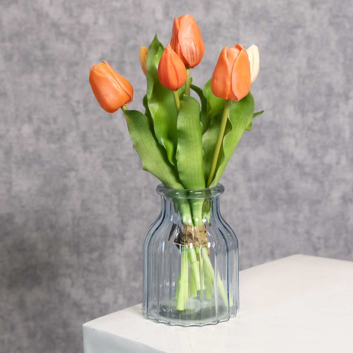Bring spring into your home with this artificial tulip bouquet! The bouquet consists of seven meticulously crafted tulips with delicate leaves and a rich, orange hue. Made from high-quality polyester and durable plastic, these flowers are not only long-lasting but also incredibly realistic. The vibrant colors and elegant design, combined with the natural look, make these tulips a highlight for your decor. Whether in a minimalist Scandinavian style, a rustic country house setting, or as a complement to a contemporary ambiance – this bouquet blends seamlessly into any interior.