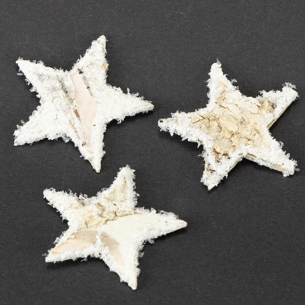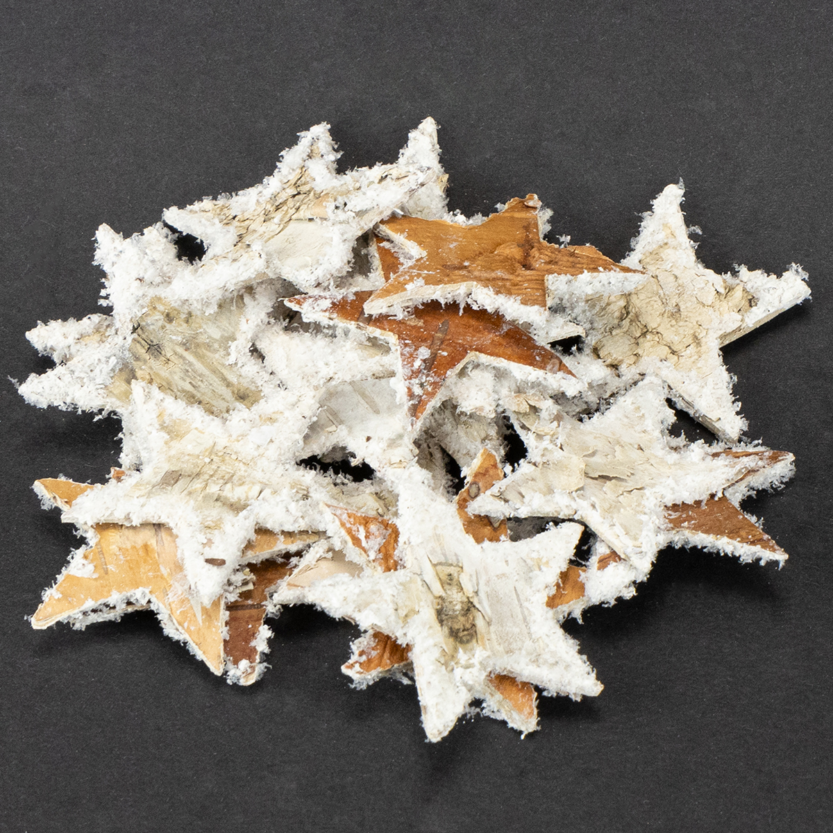 Birch stars, snow-covered, 4cm, natural, 60 pieces