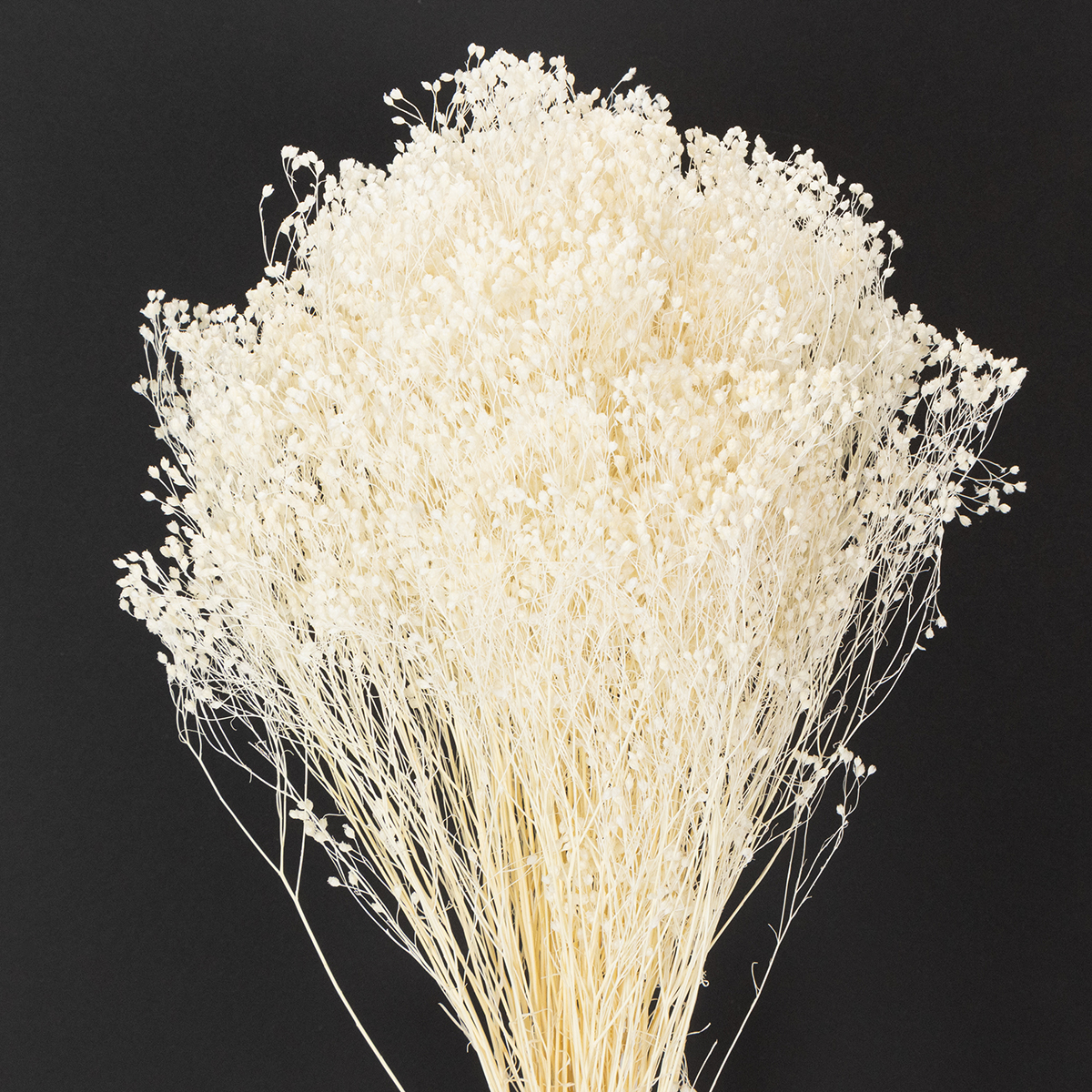 Dried broom bloom resembles baby's breath. Both dried flowers are incredibly versatile. The delicate stems of the broom bloom branch out countless times, giving this bunch its bushy appearance. Furthermore, the broom bloom is captivating with its many pearl-like blossoms.