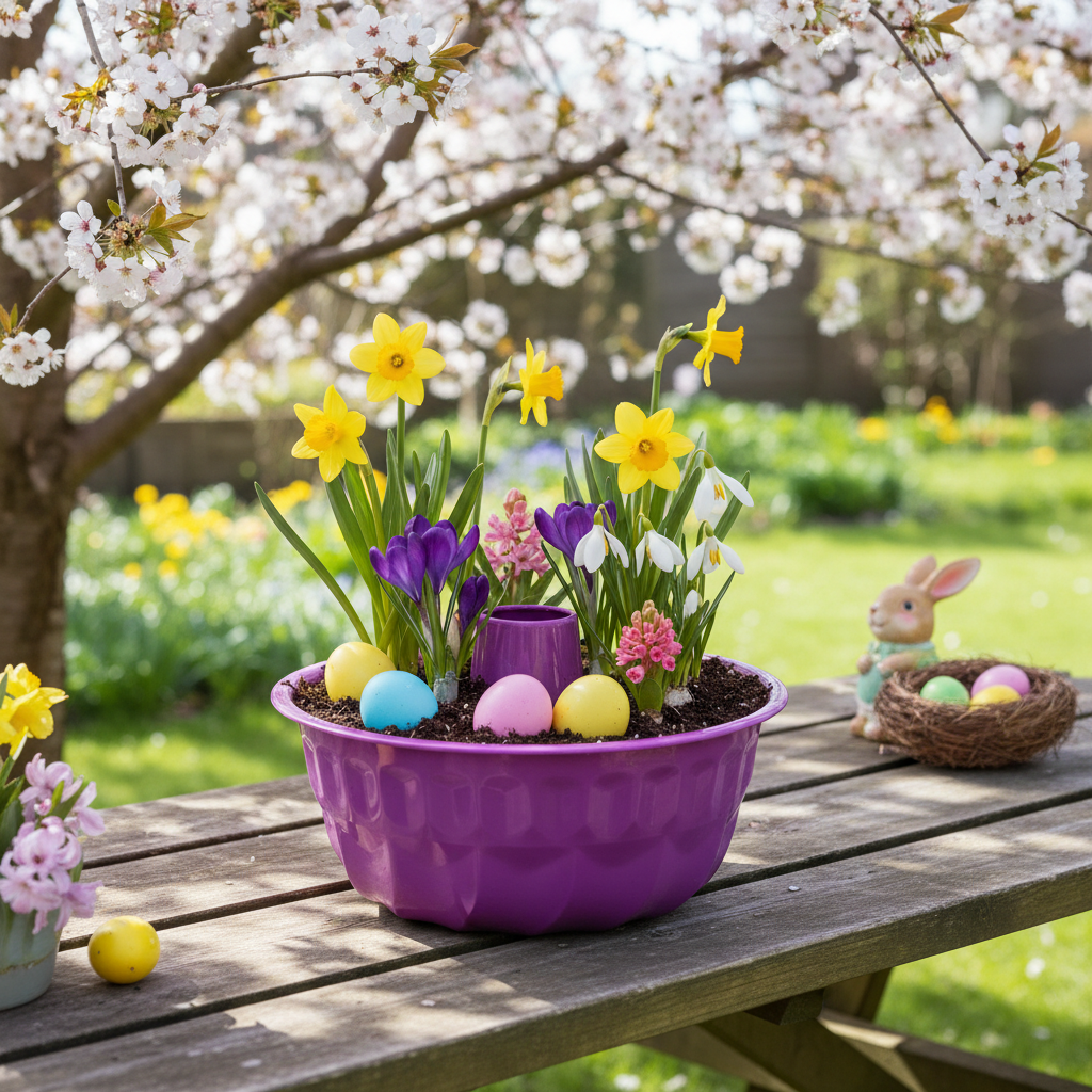 The purple metal Bundt cake pan opens up many creative approaches for interior design and outdoor use. In modern interiors, it fits perfectly as a striking decorative bowl on the living room table or on the shelf. Use it as an original decorative bowl for a dried arrangement or plant it with early bloomers to create a unique flower arrangement that will be an absolute highlight.