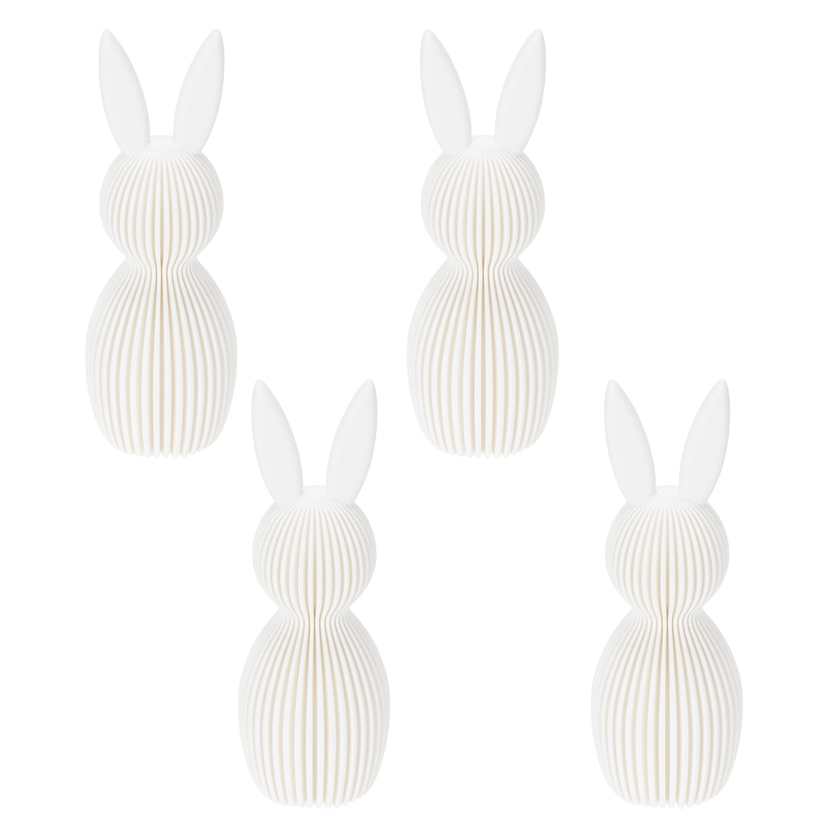 Looking for stylish and modern Easter decorations? These bunny figurines in radiant white will transform your home into a true spring oasis. With their minimalist design and perfect size of 11 centimeters, they are incredibly versatile – charming, understated, and easy to use. Whether on the windowsill, the mantelpiece, or as an elegant accent in the living room, these adorable decorative bunnies are guaranteed to catch everyone's eye. The four figurines in one pack offer you countless possibilities to arrange them however you like. Can you already feel the festive spirit?