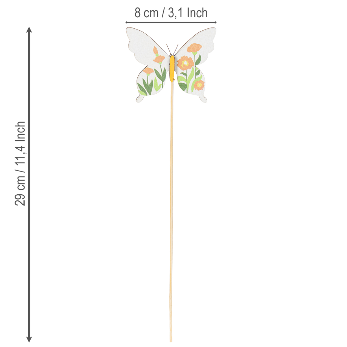 Do you love natural decorations with a touch of creativity? Then let these butterflies inspire you! Whether you integrate them into flower arrangements or use them as a subtle accent in flowerpots, these garden stakes create a charming atmosphere and add that special something. And the best part? At 29 cm tall, they're neither intrusive nor do they lose their presence. Unleash your creativity and design your own garden oasis with these charming butterfly stakes.