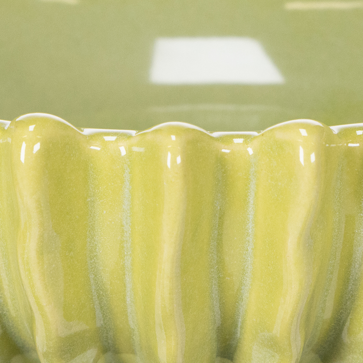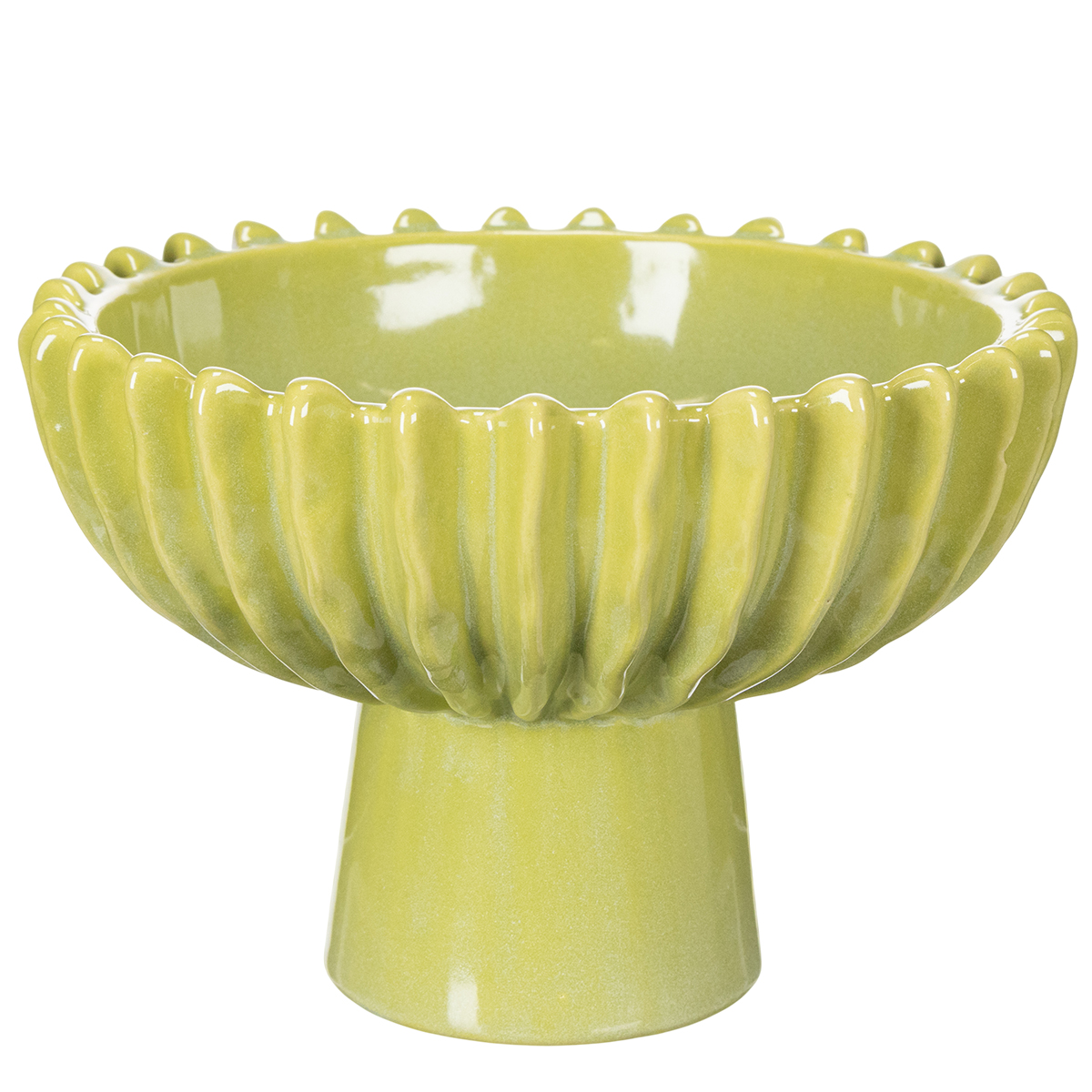 Our green ceramic bowl, with a 21 cm diameter, is not just a functional home accessory, but a statement piece of modern design. The high-quality ceramic material impresses with its smooth, glossy surface and precise craftsmanship. The inspired ribbed design is particularly striking, playfully referencing nature and reminiscent of cacti. The fresh green color reinforces this impression and brings vibrancy to any room.