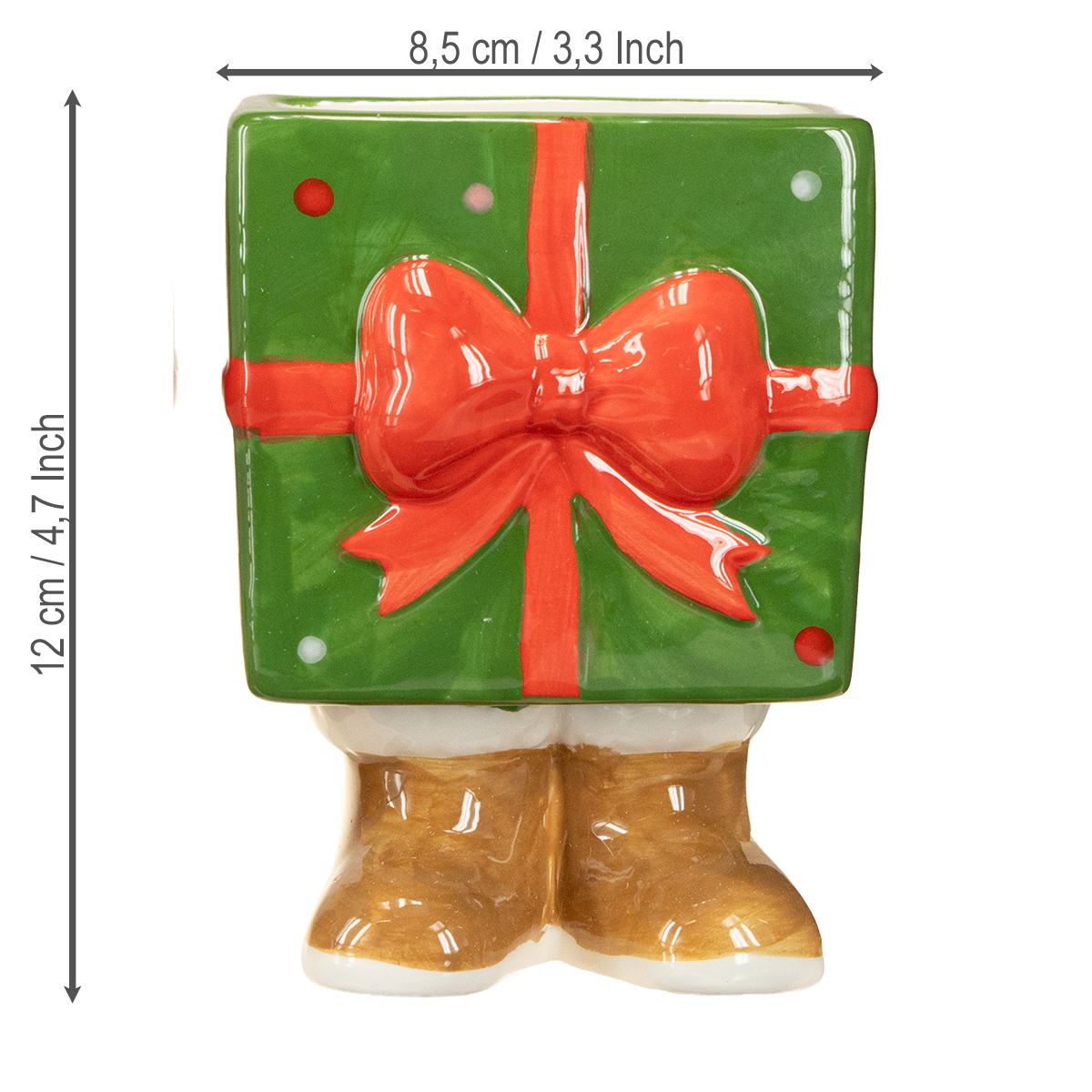 Original Christmas decorations with a certain something – in this case, with feet: Let yourself be enchanted by this ceramic Christmas planter! These charming gift packages with feet and a large red bow simply belong on every table during Advent – or on your windowsill. Whether in the living room, on the table, or as an original eye-catcher in the office: these small works of art conjure up a warm, festive atmosphere in any setting during the Christmas season.