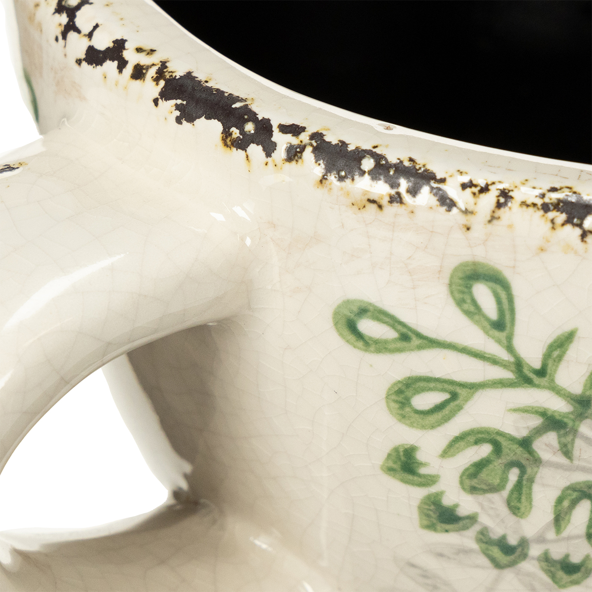 Looking for a charming way to stylishly display your houseplants? This ceramic planter with a floral pattern will add a fresh touch to your windowsill decor! With its soft white base and delicate green plant motifs, this rustic cup combines classic aesthetics with a touch of vintage charm. Whether used as a decorative cup for your favorite windowsill, a creative pen holder for your desk, or even as an original bathroom storage solution, this versatile accessory effortlessly adapts to your needs.