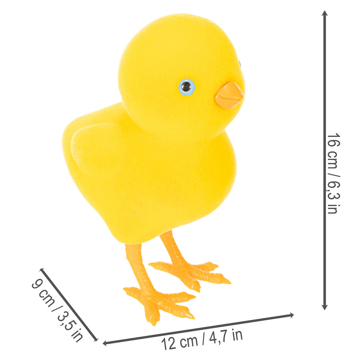Measuring 16 centimeters high, 9 centimeters wide, and 12 centimeters long, these yellow chick figurines are the perfect size for a variety of decorating ideas. Their bright yellow color brings a touch of spring to any living room and harmoniously complements your existing Easter decorations. The figurines are lightweight, sturdy, and made of high-quality plastic, making them particularly durable and easy to clean.