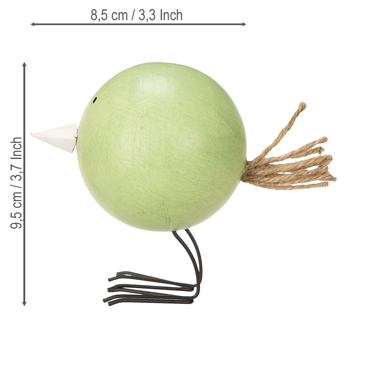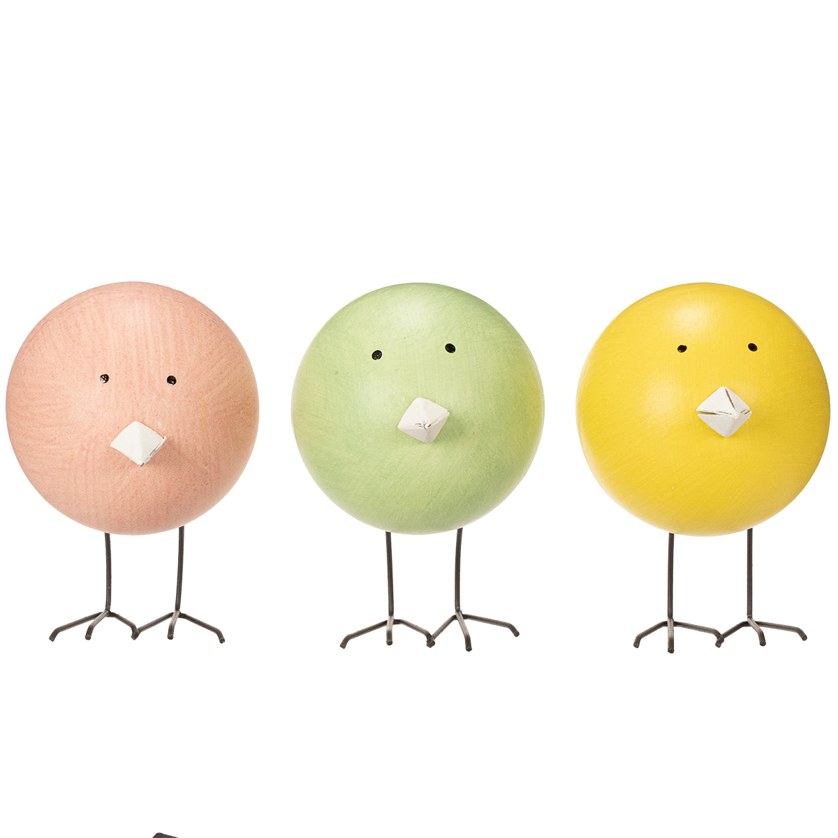 Looking for a clever way to add a playful and cheerful touch to your home? Our round chick decorative figurines will instantly brighten up any room. Whether as charming spring decorations on the dining table, a colorful addition to a festive table setting, or a sweet eye-catcher in a child's room – these three little figures in yellow, pink, and green are guaranteed to bring a smile to everyone's face. The combination of wood for the bodies and metal for the beaks and feet gives the chicks a sturdy base and a modern design twist.