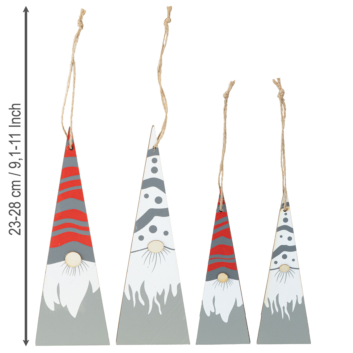 Christmas gnomes wooden for hanging grey red 15/19.5cm 8 pcs