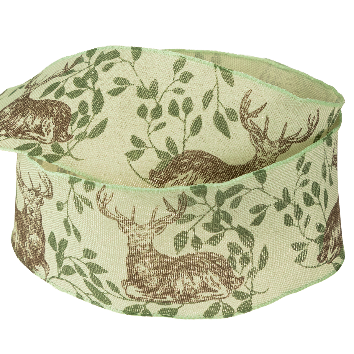 Product name: Christmas ribbon with deer motif ribbon light green 40mm 20m