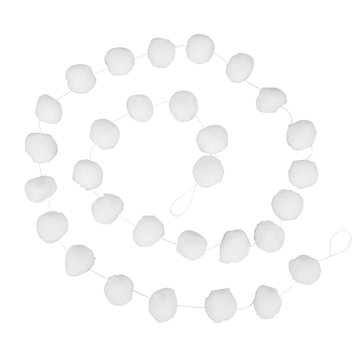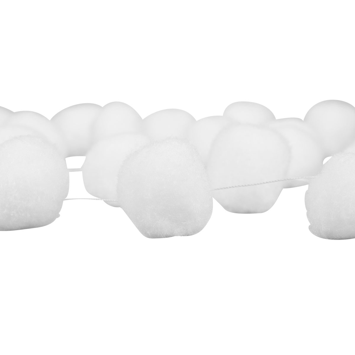 The decorative snowballs are made of fluffy plastic felt and are strung on a white string, with a loop at both ends. You can hang the snowball chain as a Christmas garland or wind it around the Christmas tree.