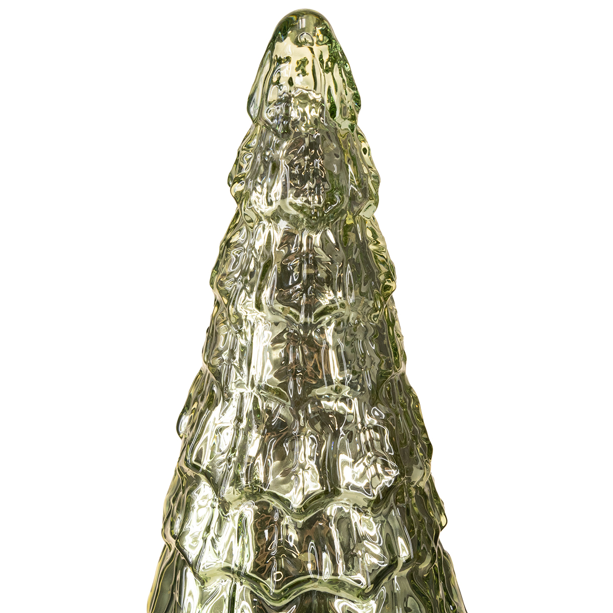 The green Christmas tree with LED lights impresses not only with its compact design, but also with its sophisticated combination of sculptural fir shape, material, and play of light. The tree is made of glass and, thanks to its selective vintage color gradations, reveals golden light accents that, combined with the silvery-green shimmer of the base color, create a breathtaking visual effect. Furthermore, it stands on a sturdy plastic base with a battery compartment, allowing it to be placed anywhere. The battery-operated LED light provides an even, warm glow that brings atmospheric light and coziness even to the darkest winter days. Perfect for use in various interior styles, such as shabby chic, country house, or classic vintage looks!