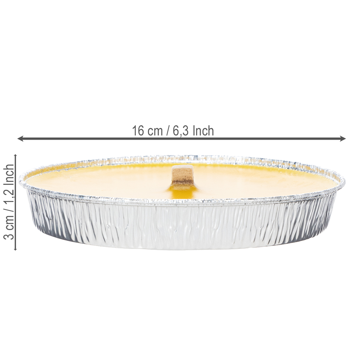 Our citronella flame bowl is here to make your summer moments even more beautiful. The glow of the yellow scented candle, combined with the intense yet pleasant citronella fragrance, provides a fragrant insect repellent. The warm light creates a cozy ambiance that visually enhances your surroundings. Thanks to the sturdy aluminum bowl, the wax is guaranteed not to leak – ensuring safe use on any surface, whether a wooden table, stone floor, or lawn. Especially lovely at garden parties or as a decorative accent on patio tables: the citronella scented candle combines rustic style with functionality.