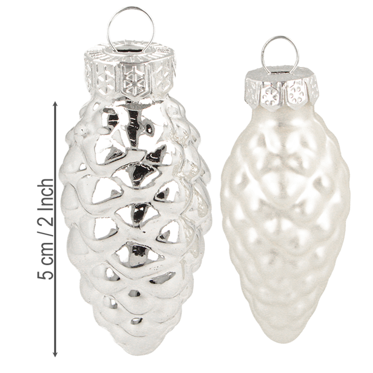 Product name: Cones mix made of glass silver 5cm 14 pcs