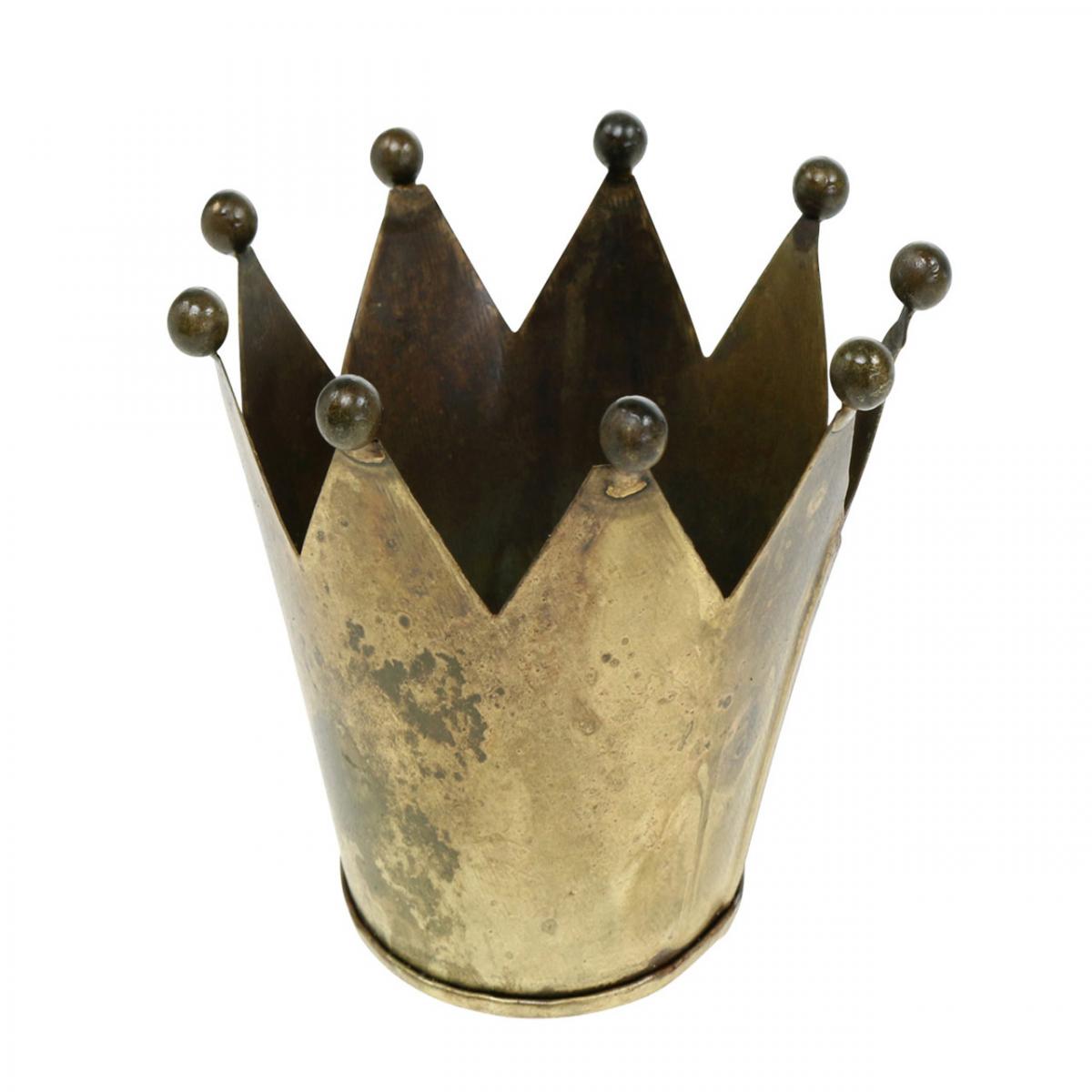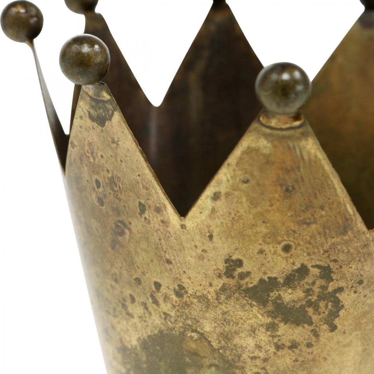 Crown tealight holder metal antique brass look Ø12.5cm H11.5cm