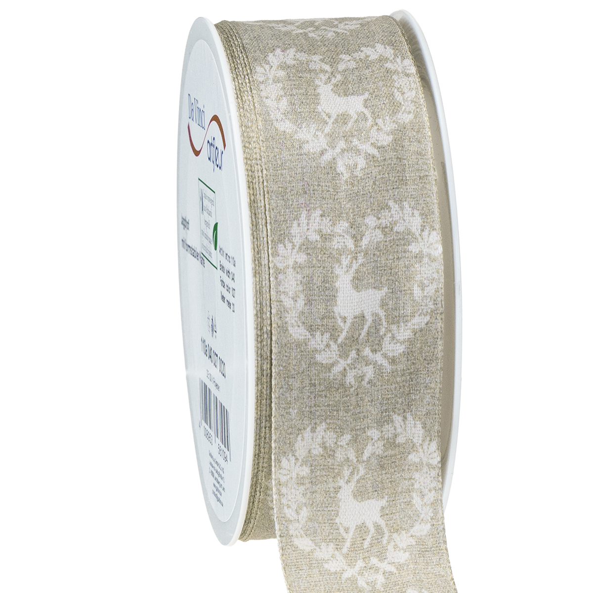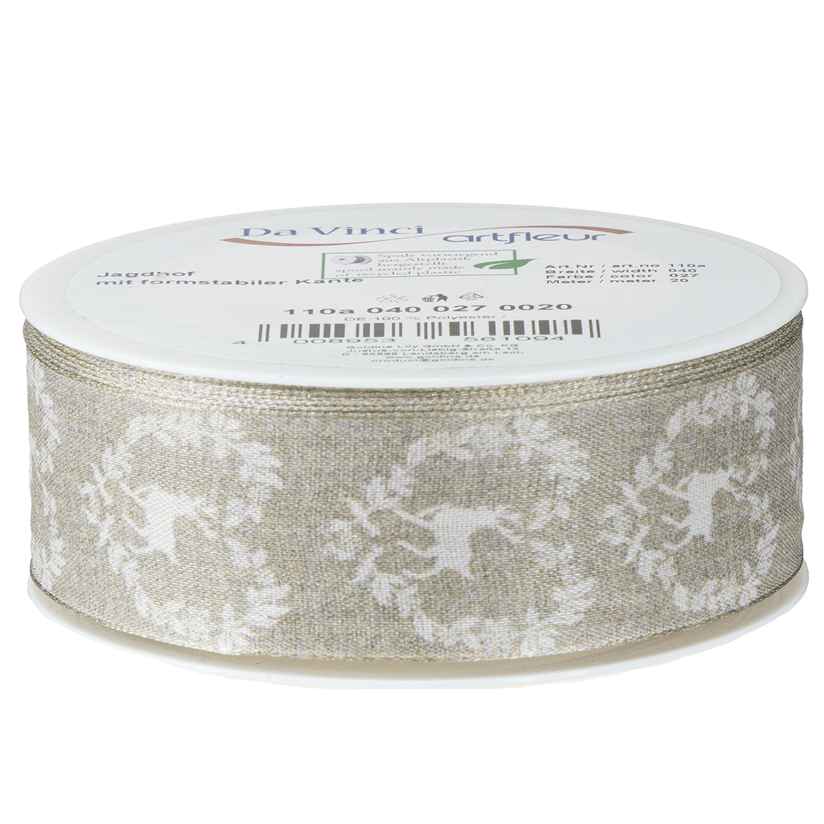 The natural colored decorative ribbon has a length of about 20 meters, with a width of about 40 millimeters. It is 100% polyester and comes with a handy plastic roll.