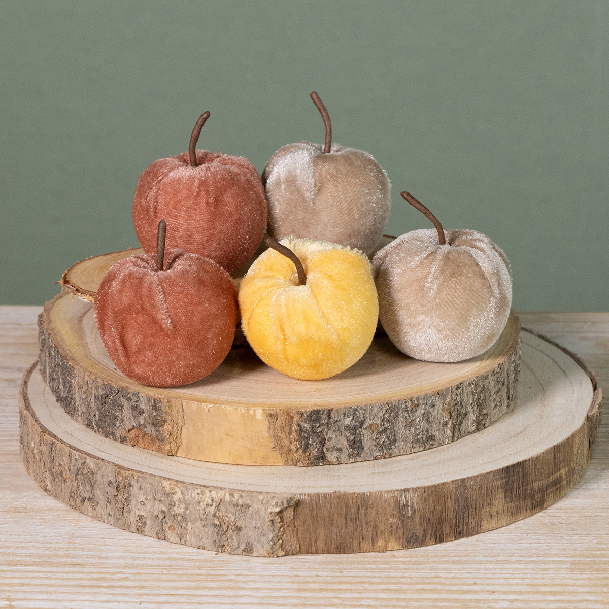 Add a touch of elegance and sophistication to your decor with our decorative fabric apples. These velvet apples, available in the elegant autumn colors of reddish-brown, beige, and yellow, bring a velvety shimmer to any setting. These small decorative apples are perfect for implementing minimalist-inspired designs and blend effortlessly into a variety of styles—from modern country house style to elegant shabby chic. Consisting of a Styrofoam core, each apple is covered in artificial velvet for a fine texture and a pleasant finish. With a diameter of approximately 5 cm and a height of around 6 cm, these decorative fabric fruits are ideal for autumnal table decorations in the dining room or make a particularly striking eye-catcher in shop windows and on shelves. By combining them with other seasonal products from our range at Floristik24, you can unleash your creativity.