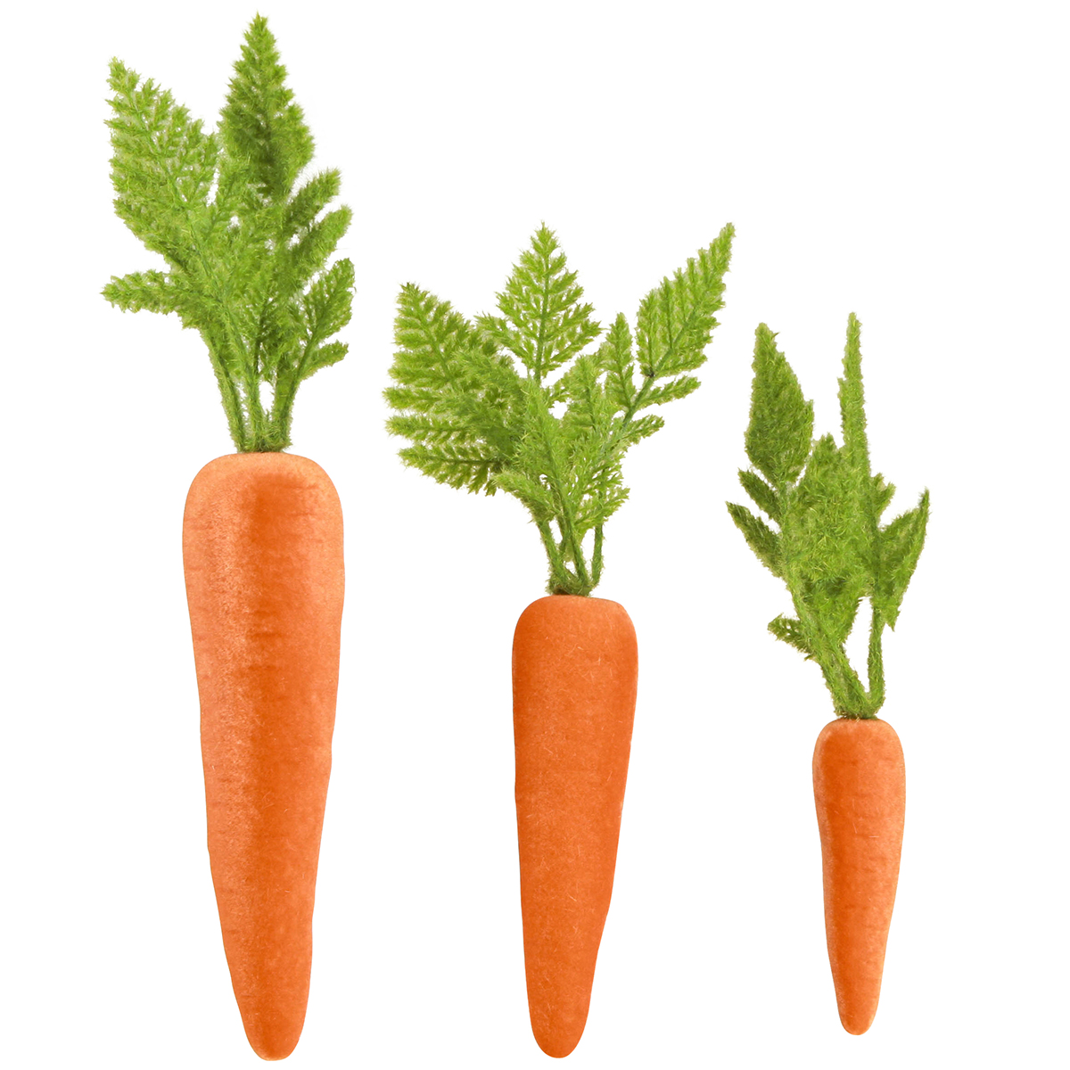 - 6 flocked carrots in a set: 1 large, 2 medium, 3 small