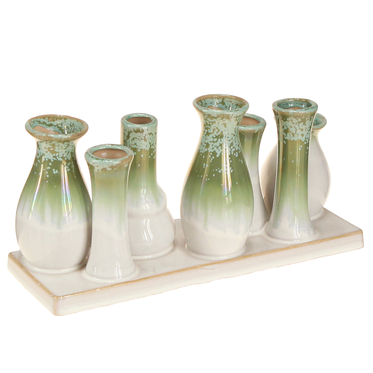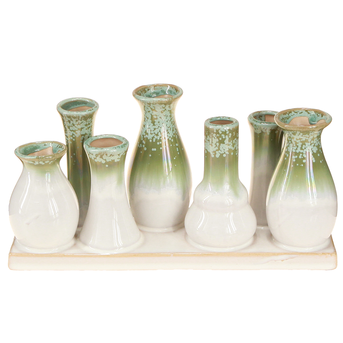 - Set of 7 decorative ceramic vases on a sturdy tray
