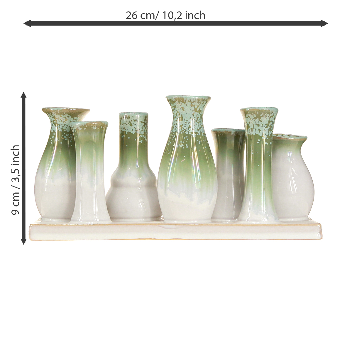 Decorative ceramic vases on a tray, versatile home decoration, 26cm