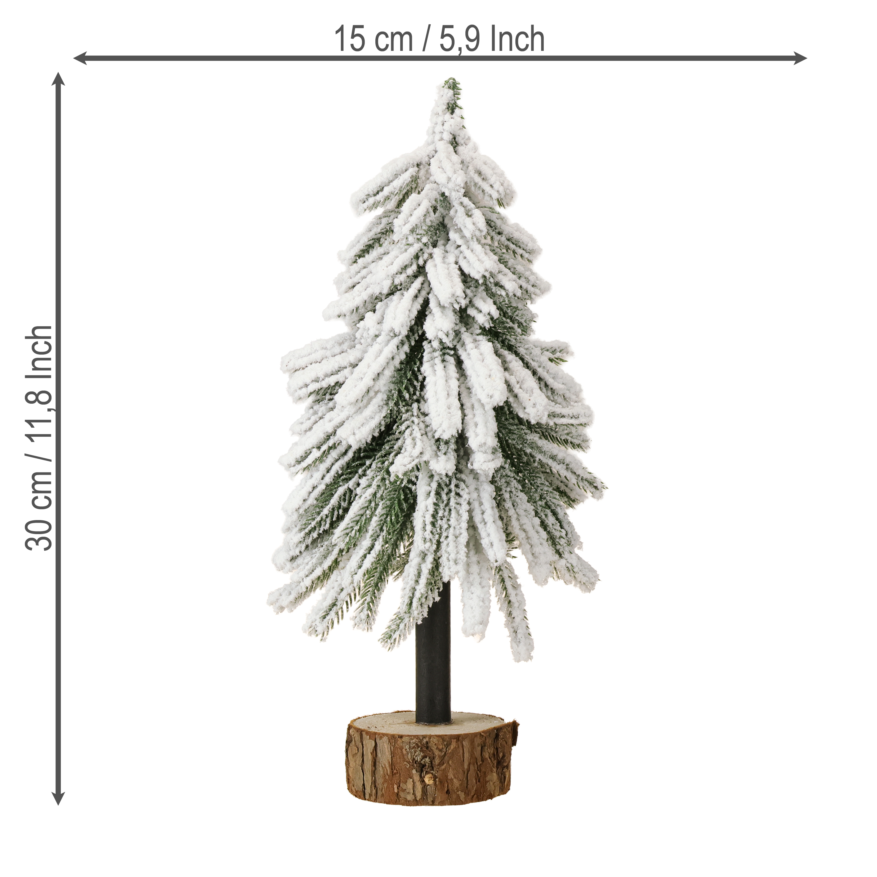 Decorative Christmas tree covered in snow on a wooden base Ø15cm H30cm