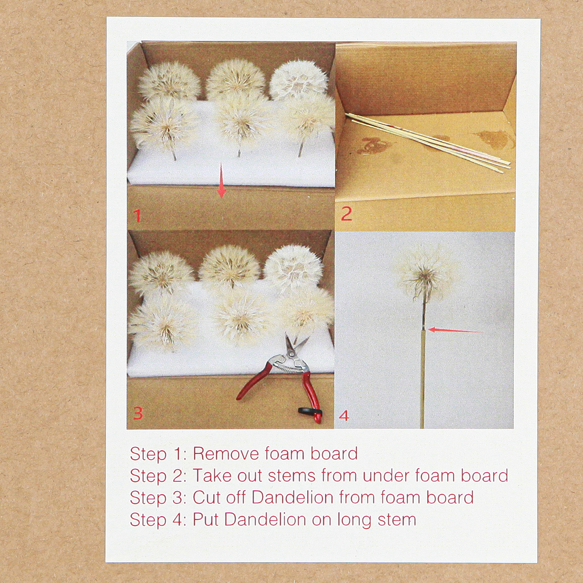 - Combine the dandelions with our dried flowers for an individual arrangement.