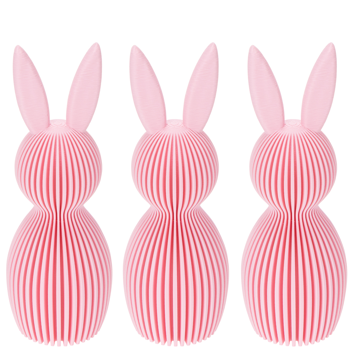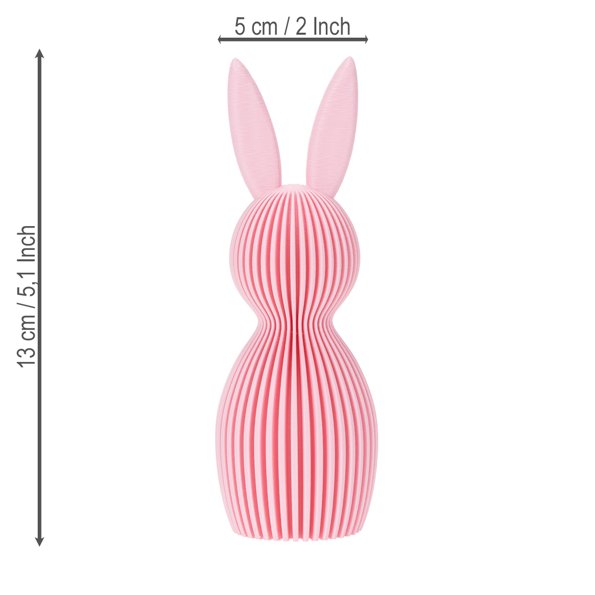 Who doesn't love welcoming spring with fresh, cheerful decorations? This pink decorative bunny is the perfect choice to tastefully brighten up your home or even your Easter breakfast. With its modern design and delicate pastel colors, it's a real eye-catcher. Whether on the sideboard in the living room, as a table decoration at brunch, or in an invitingly decorated shop window – this bunny brings the freshness of spring into your home and instantly creates a cheerful atmosphere. A particularly charming feature: the decorative bunny is made of plastic but has been artfully designed to resemble a paper sculpture. This makes it lightweight, sturdy, and versatile. And the best part? You get three in one pack – ideal for creating small decorative arrangements!