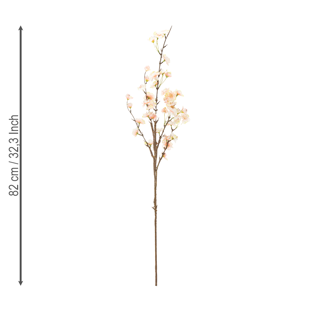 This decorative flowering branch with delicate cherry blossoms impresses with its charming design and understated elegance. Its soft pink hue allows it to blend harmoniously into various interior design styles, whether romantic country style, minimalist Japandi design, or as a fresh accent in modern homes.