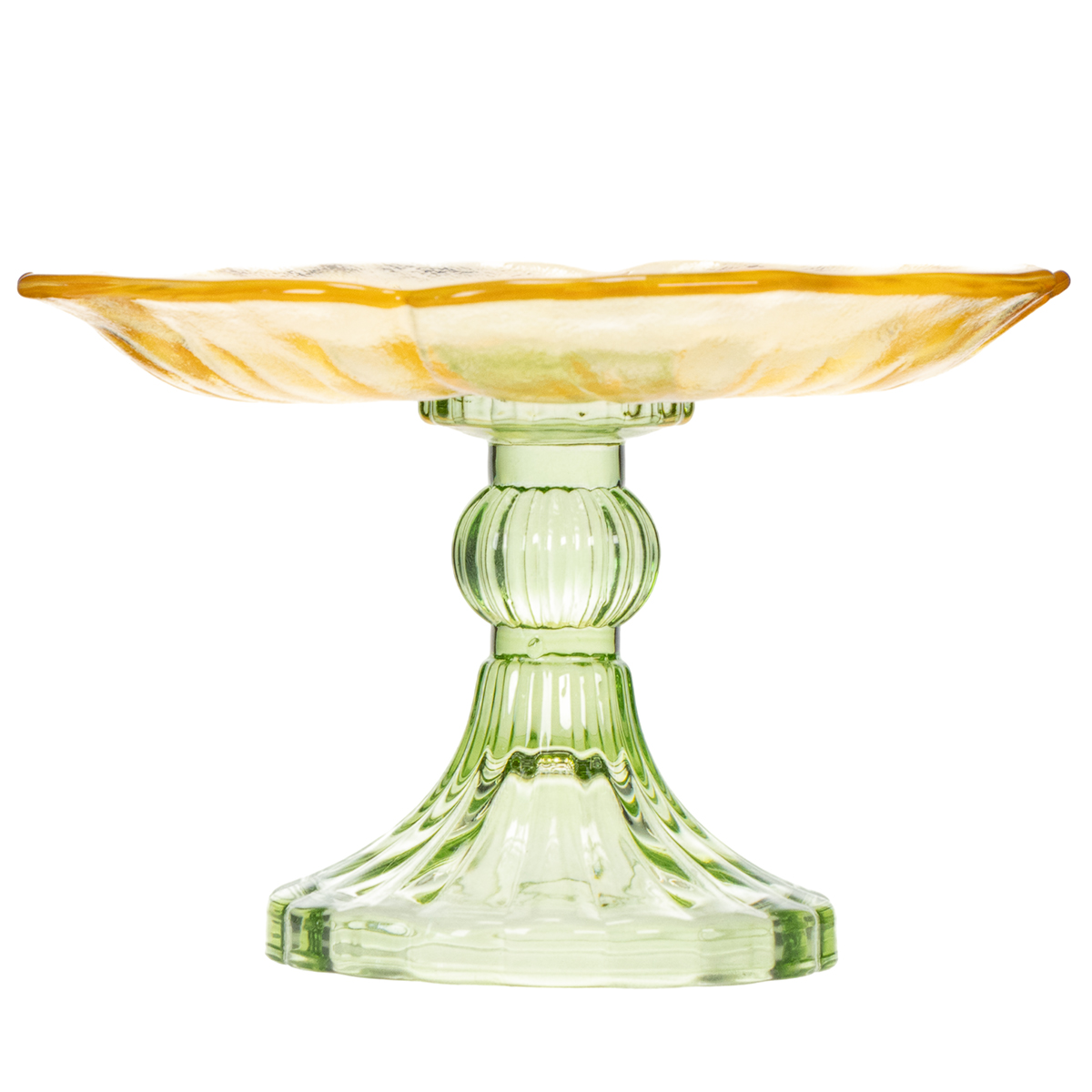 Imagine a stylishly set table where every detail catches the eye – this charming glass decorative plate with a foot brings that vision to life. Whether for festive occasions, spring decorations, or as subtle room decor with a touch of nostalgia, this decorative plate fits perfectly into any setting. Made of high-quality glass, with a floral pattern and a delicate yellow hue, it's the ideal choice for elegantly presenting your favorite small sweets or pastries. With its compact size of 15 centimeters in diameter and 9 centimeters in height, it's a stylish centerpiece on any table. Not dishwasher safe, but still easy to care for, it combines practicality with decorative beauty.