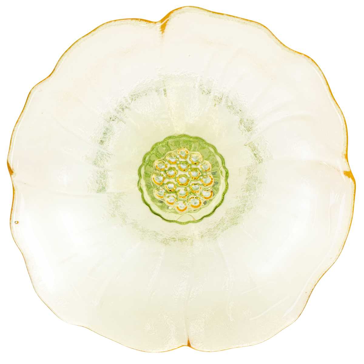 This beautiful festive glass decorative plate with a footed base is a real eye-catcher with its delicate floral design. The green, clear glass base elegantly highlights the soft yellow blossoms and gives the plate a light, airy feel. Use it to stylishly present delicately wrapped sweets, small cakes, or pastries. Thanks to its timeless design, it complements both modern and rustic settings. Ideal for special occasions such as weddings, Easter, or birthdays – or simply as a highlight of your everyday table setting.