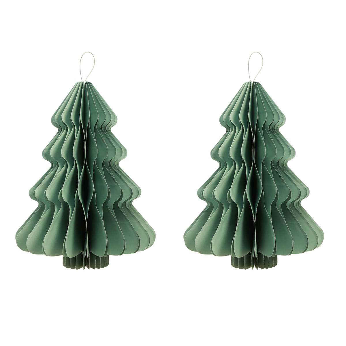 Decorative hanging paper tree Christmas mint silver H40cm 2pcs