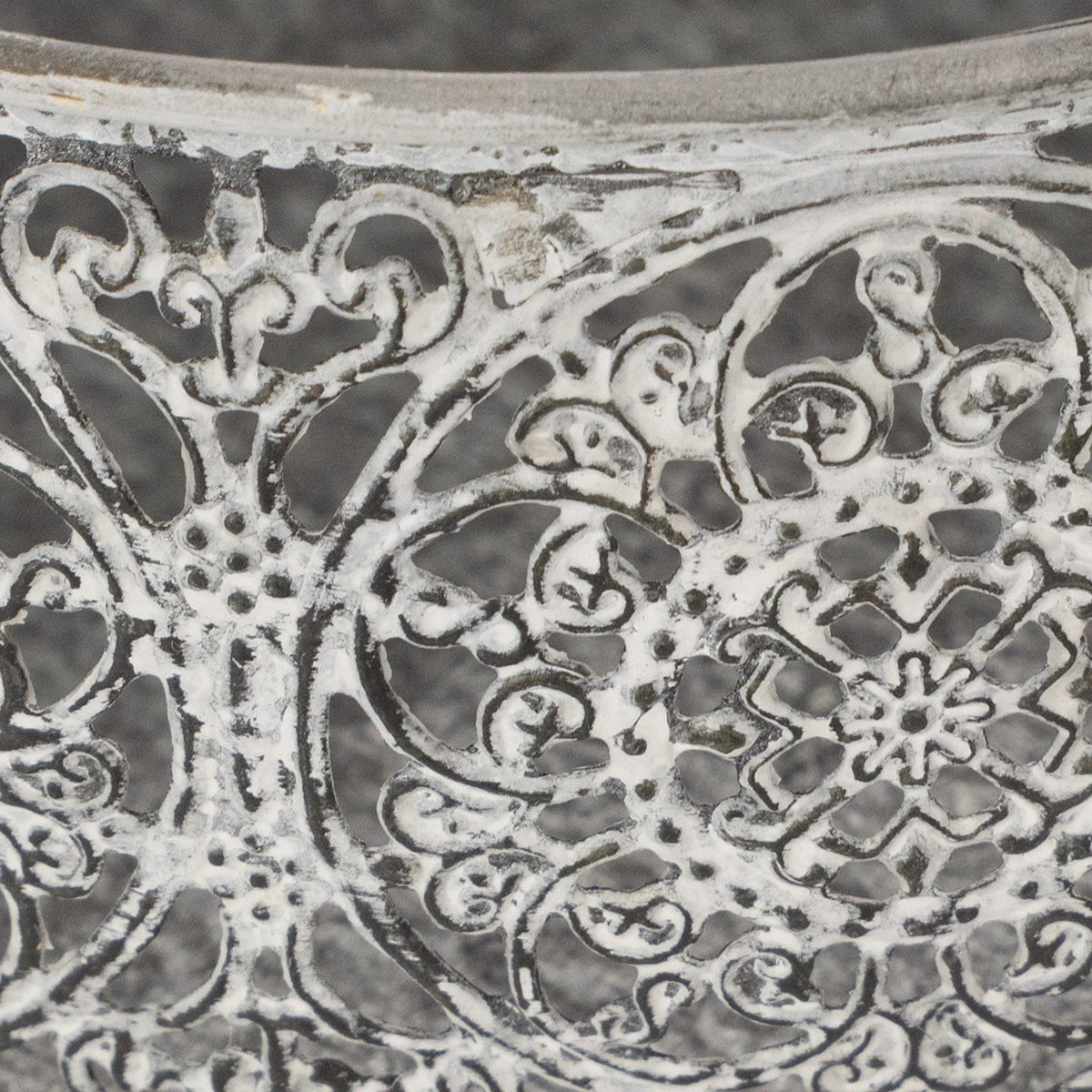 The floral patterns and the timeless silver gray make the white washed decorative bowl a wonderful vintage decoration.