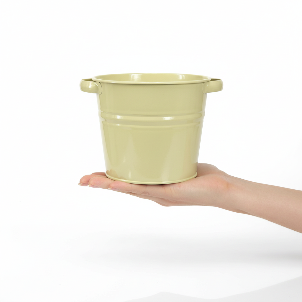 This decorative metal pot in a fresh green-yellow color sets modern accents in your home. With its impressive dimensions of around 31×26×21.5 cm and the practical side handles, this flower pot brings both functionality and style to indoor and outdoor areas.