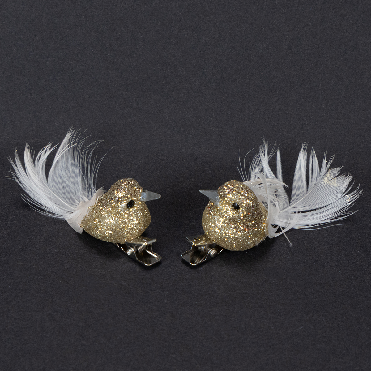 Brighten up your Christmas tree decorations with these sparkling gold clip decorative birds, or use them in pairs as a pair of decorative doves for an original wedding decoration!