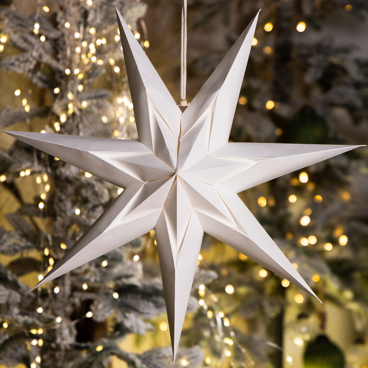 Their size of 45 cm alone makes them eye-catching, and the elegant design blends harmoniously into a wide variety of styles, from timeless Scandinavian design to modern Christmas decorations. Do you already have an idea where you might hang these paper stars in your home?