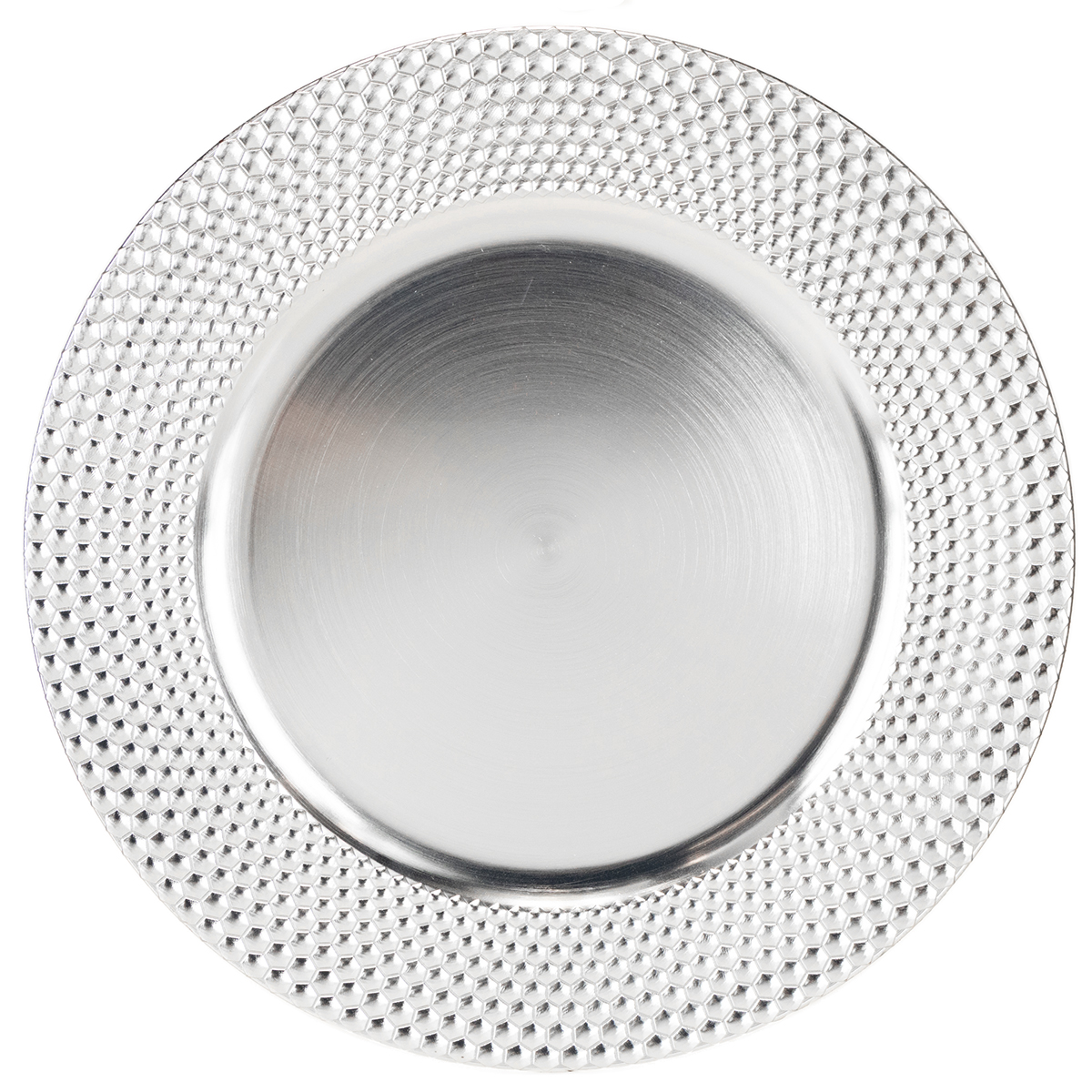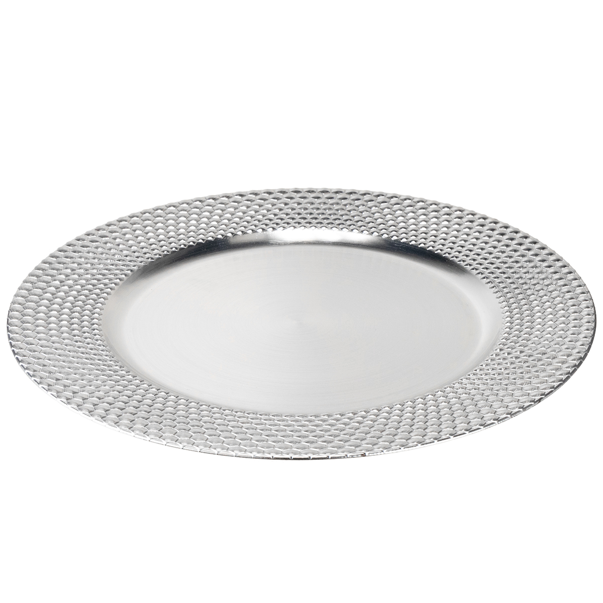 The decorative plate in silver is practically calling for exclusive decoration ideas. Place silver Easter bunnies in a arrangement with pink dried flowers or decorate the plate for Christmas with artificial snow and balls in frosty colors. Regardless of the season, silver stick candle holders are recommended for this plastic decoration.