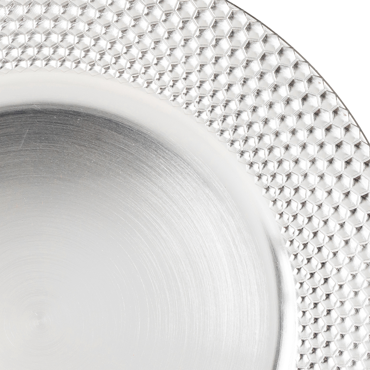 But it is the hexagon pattern on the edge that makes the plate an eye-catcher. The silver color gives the decorative plate great radiance. The underside remains untreated in black.