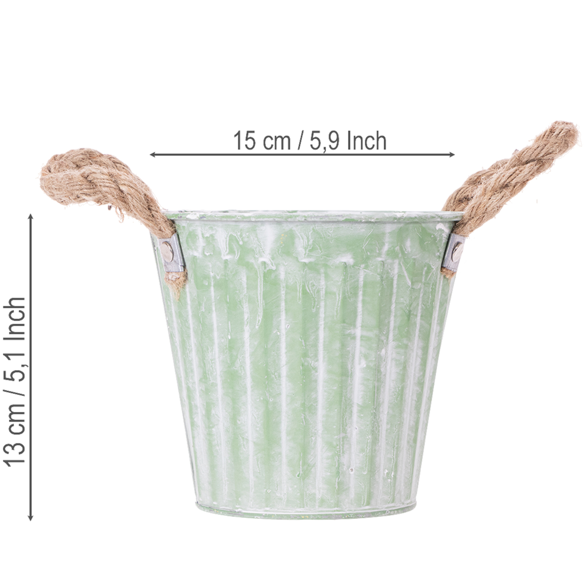 This round decorative pot with an attractive striped pattern in trendy shabby chic style is perfect as a metal bucket for planting!