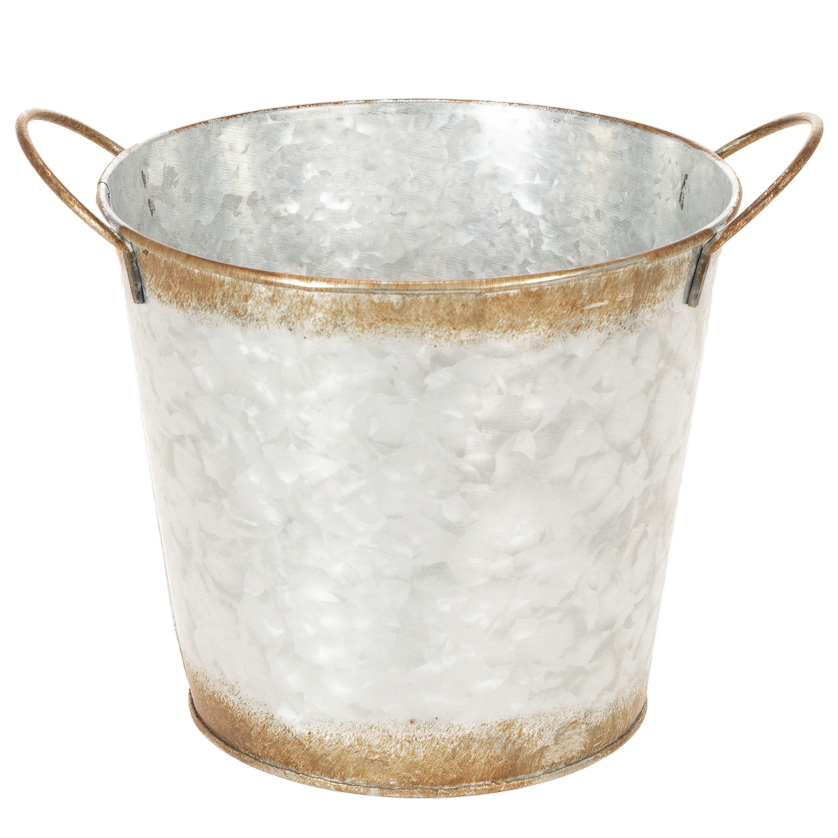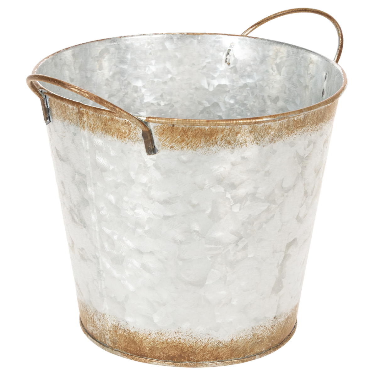 Decorative pot with handles, planting bucket, metal container, silver, weathered steel, Ø17cm H16.5cm