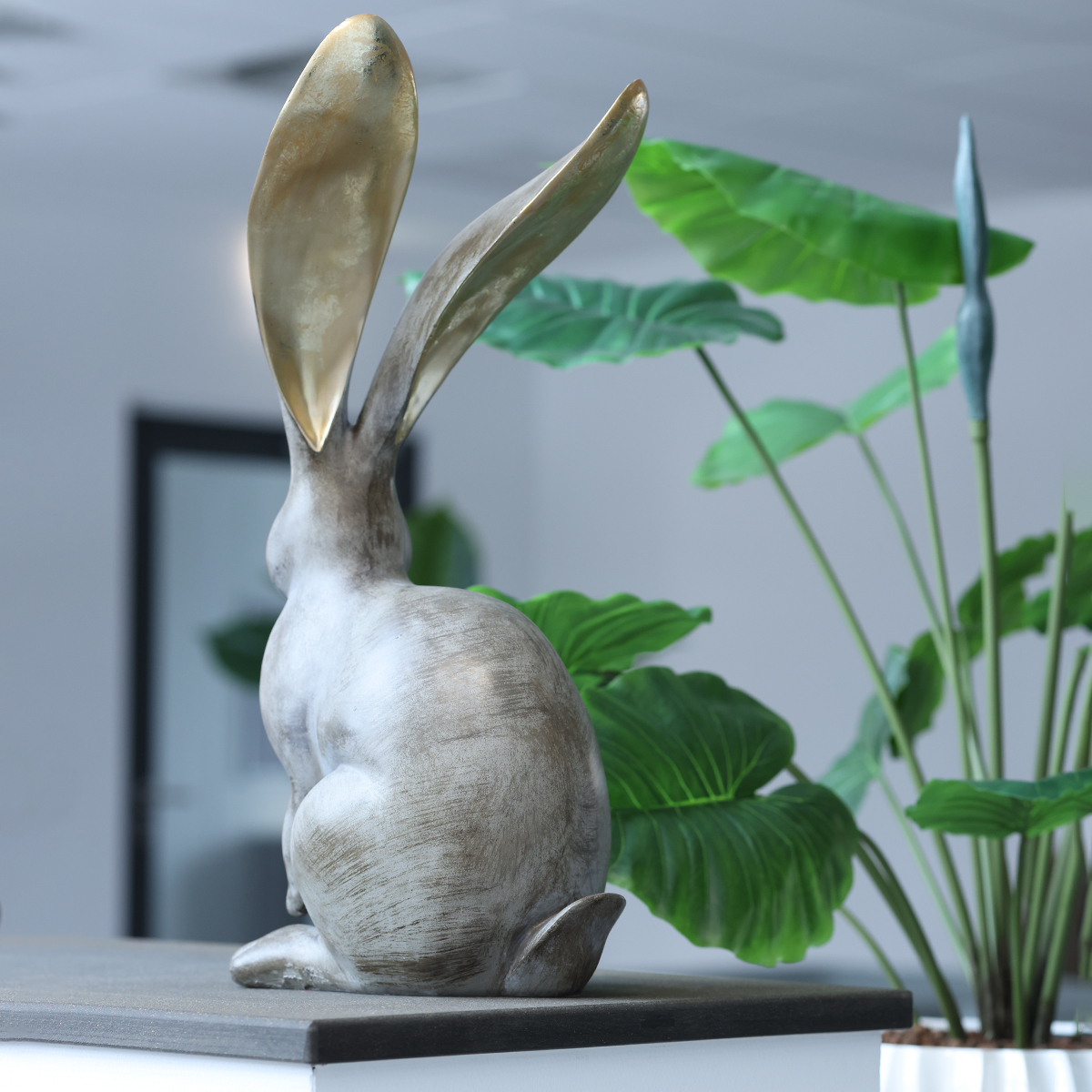 Why is this rabbit figurine a must-have for spring and Easter? It's due to the superb combination of design, material, and functionality. At a substantial 52 cm, the rabbit magically attracts attention without being obtrusive. The gold-colored, internally shimmering ears give it that certain something – perfect for creating a luxurious ambiance. The polystone material is also robust and weather-resistant, making the rabbit suitable not only for indoor use but also for balconies or gardens.